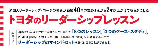 2015年には、家族と東京に引っ越し、18カ月の日本の滞在中に40年トヨタに勤めた吉野勇夫さんとプロフェッショナルな関係を培い、本書『トヨタのリーダーシップレッスン』を書き下ろした。