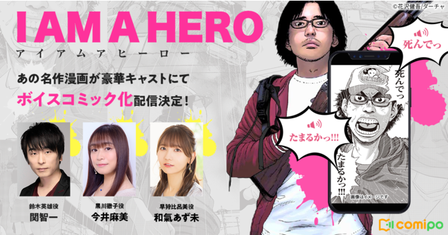 人気マンガ『アイアムアヒーロー』のボイスコミックがアプリ「comipo」で配信!! 主人公・英雄を演じる関智一さんと作者の花沢健吾先生のスペシャル対談動画も公開予定!