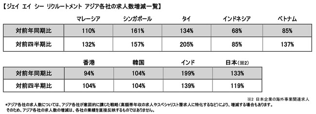 求人数は、インドネシアを除く全地域で、前四半期を上回る
