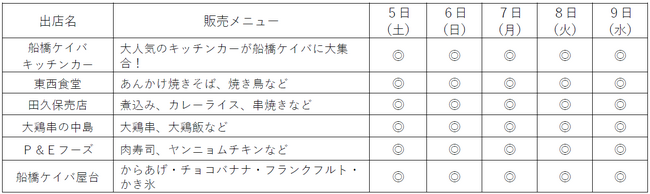 出店場所:スタンド2Fデッキ付近・スタンド1F投票所付近ほか