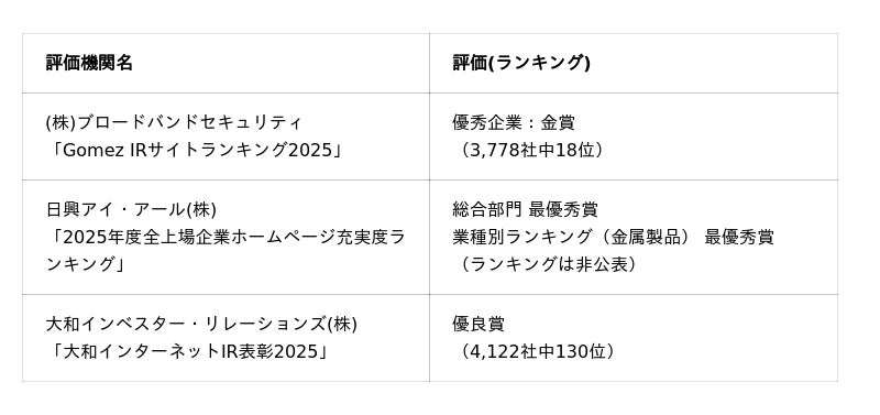 三和ホールディングス株式会社(本社:東京都新宿区/社長:高山靖司)は、2025年度における上場企業を対象とした主要IRサイト評価機関(3社)によるホームページ表彰において、以下の評価を獲得いたしました。