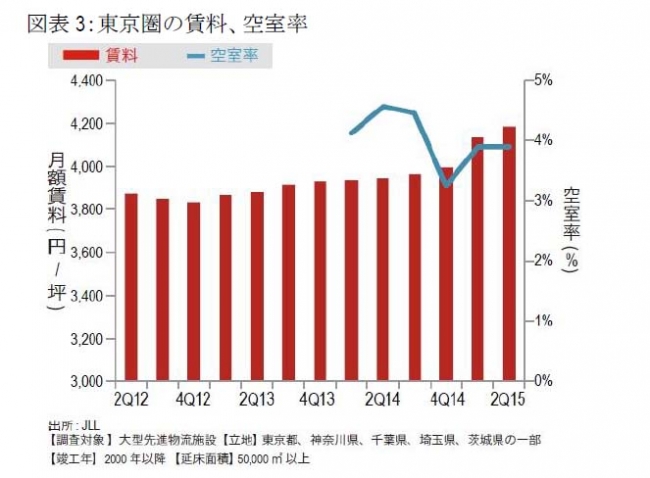総合不動産サービス大手のJLL(本社: 東京都千代田区、代表取締役社長:河西利信)は、東京圏※1のロジスティクス市場動向2015年第2四半期をまとめました。本内容は、2015年8月10日配信の「ジャパン プロパティ ダイジェスト(JPPD) 2015 年第2四半期(4‐6月)」から、ロジスティクスの市況を深堀りし、まとめたものです。