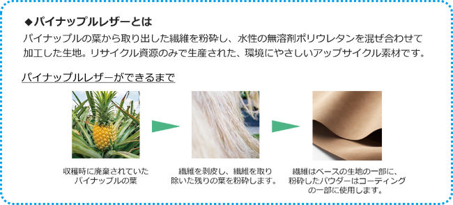 パイナップルレザーと聞いてどのようなことが思い浮かぶでしょうか。「どうして廃棄素材を活用しているのだろう?」「パイナップルの葉がどのようにしてレザーになるのか?」「パイナップルの香りがするのかな?」等、着眼点は人それぞれだと思います。