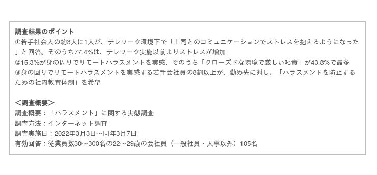 「クローズドな環境で厳しい叱責」などリモート環境ならではのハラスメントを訴える声も