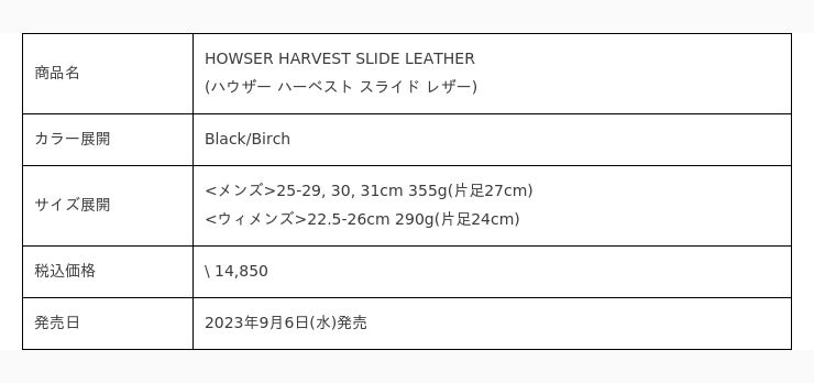 NEW <メンズ・ウィメンズ展開> HOWSER HARVEST SLIDE LEATHER(ハウザー ハーベスト スライド レザー) 9/6発売