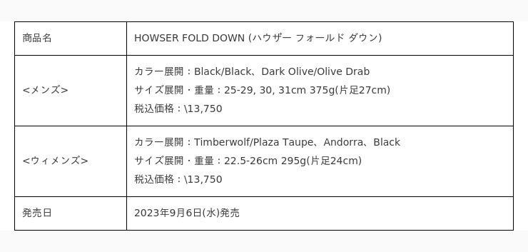 NEW <メンズ・ウィメンズ展開> HOWSER FOLD DOWN (ハウザー フォールド ダウン) 9/6新発売