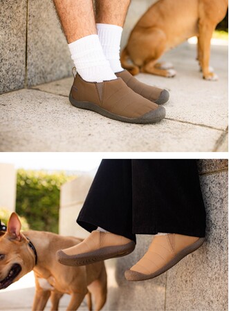 KEENの秋冬定番<HOWSER(ハウザー)コレクション>は、まるでサンダルのように快適な履き心地と暖かさで定評のあるハイブリッド・コンフォートシューズ。内側のマイクロフリースが足を暖かく包み込み、足裏形状に合わせて立体成型されたフットベッドが心地よいクッション性を生みだします。アウトソールは壁や床に色移りしないノンマーキングラバー素材なので室内着用もおすすめ。加えて、耐摩耗性とグリップ性も備えています。