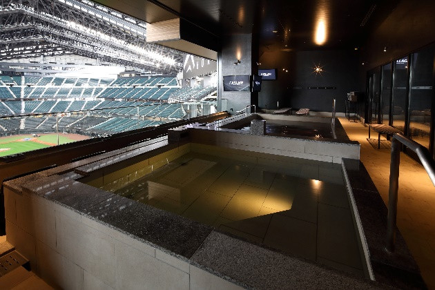 世界初のフィールドを一望できる天然温泉とサウナの贅沢な空間を、貸切利用いただけます。