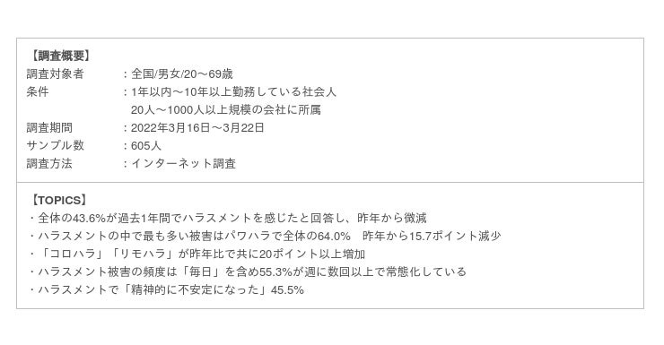 ※詳細は別紙の「2022年 ハラスメント実態調査 報告書」をご参照ください(※3)