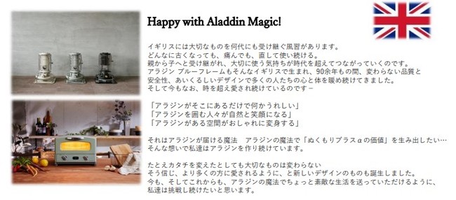 当社はこれからも皆様にご愛顧いただけるよう、アラジンブランドの更なる拡大を目指してまいります。