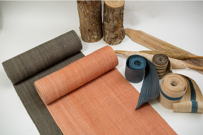 おもに平取町二風谷地区で伝統的技法で作られた反物。オヒョウ等の木の樹皮を煮るなどして糸にし、100年前と同じ様式の道具を用いて織り上げる。