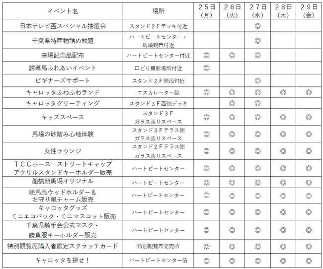 さらには、日本テレビ盃(JpnII)当日の9月27日(水)は、かずさ和牛が当たるスペシャル抽選会や千葉県の特産物詰め放題イベントも実施!9月の開催も船橋ケイバを是非お楽しみください!