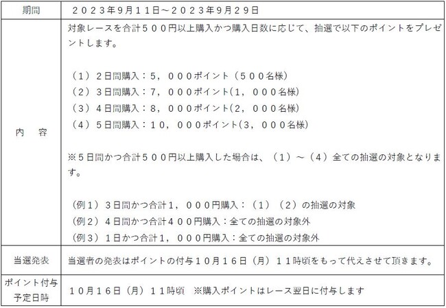 当日購入した船橋競馬の未確定勝馬投票券1,000円以上(合算可)でご参加いただけます。