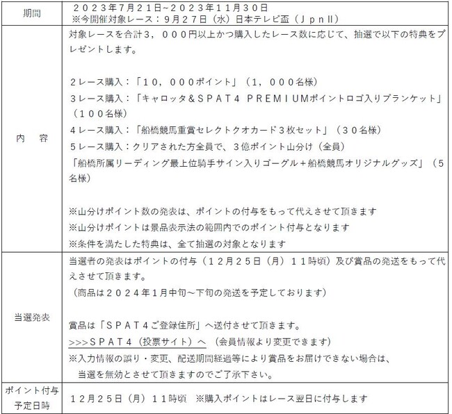 応募方法:船橋ケイバのLINE公式アカウントの友だち登録メッセージ配信されるバナーから応募