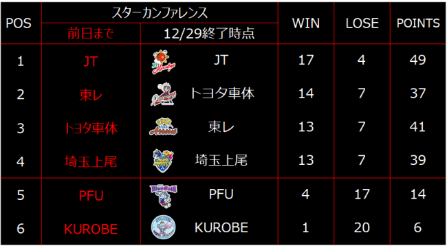 バレーボール国内最高峰リーグ V.LEAGUE【12月29日の試合結果】