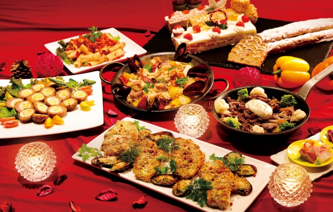 他にも、「ビーフストロガノフ」「スコッチエッグ」「シーフードのパエリア」など見た目に華やかな洋食中心の料理と、「冬野菜のふくませ煮」「飯南ポーク味噌柚庵焼き」などの和食と合わせて約40種類のボリュームあるメニューで、1年間の感謝を込めた忘年会を楽しんでいただけます。