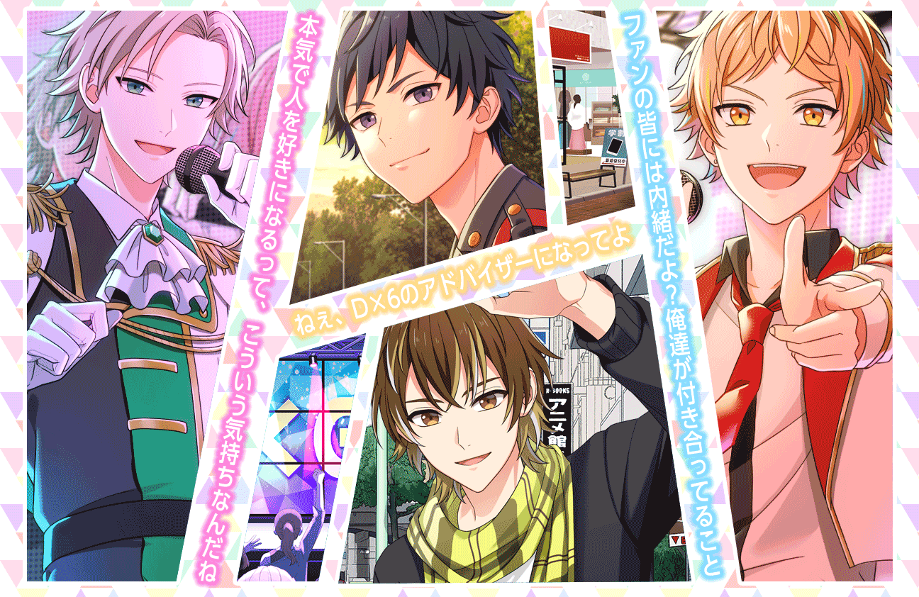 アイドルプリンスに登場するアイドルグループ『D×6』のファンダム名(ファン名称)が“dreamy”に決定!LIVE配信のコメントでは、“dreamy”同士の会話もあったり、メンバーだけでなく、ファン同士の仲の良さもウリ!チャット型恋愛シミュレーションゲームでは、まさに新しいジャンル!