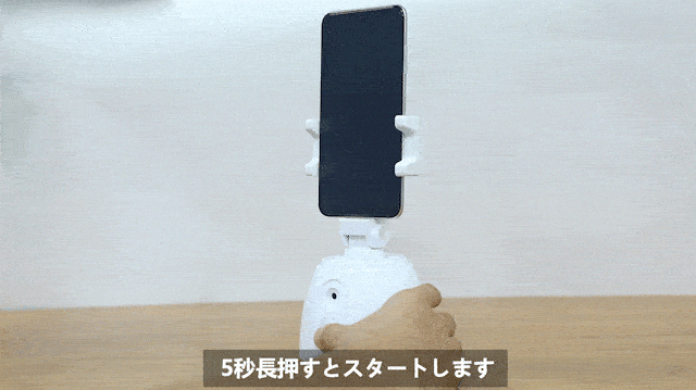 操作はボタン1つだけ!5秒長押しすると、雲台が自動的に人物の追跡を始めます。スマホの装着方法も簡単なので、複雑な設定や操作が苦手な方も安心です!