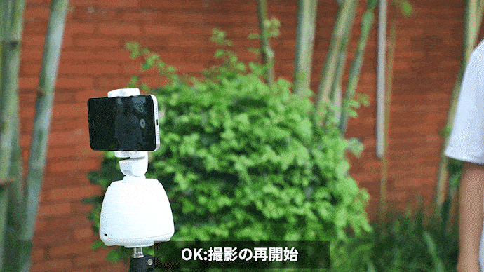 ジェスチャーコントロール機能が搭載しており、手のひらを雲台カメラに向けると撮影を一時停止、OKジェスチャーで撮影を再度開始します。手の動きでスマートにコントロールできるので、カメラの前を往復して何度も調整する必要がありません。