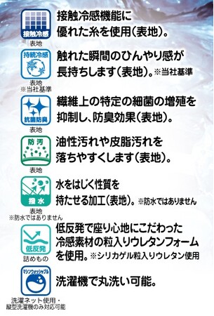 ■「汚れにくい!! ひんやり持続 ラグ」について表地に触れたときにひんやりする接触冷感機能に優れた生地を使用しています。 今年は、触った時のひんやり感が長持ちします。 詰めものに座り心地にこだわった低反発ウレタンフォームを使用し、裏地にはほどよい弾力性の旭化成アドバンス(株) f-touchメッシュを使用しています。