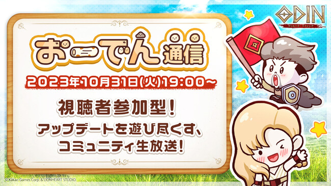 また、同日の定期メンテナンス後より、「ワールドダンジョン」実装記念キャンペーンや各種ゲーム内イベントも実施し、さらに10月31日(火)には、コミュニティ生放送「おーでん通信」も実施予定です。