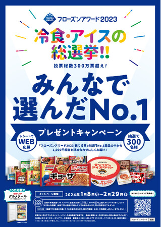株式会社日本アクセス(所在地:東京都品川区、代表取締役社長 社長執行役員CEO:服部 真也、以下「当社」)は、2024年1月8日より冷凍食品・アイスクリームの市場活性化を図るため、「フローズンアワード2023」の結果を活用した『みんなで選んだNo.1プレゼントキャンペーン』を実施いたします。