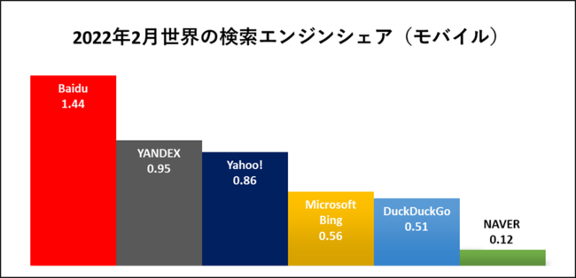 ■世界の検索エンジンシェア(モバイル) 2016年2月-2022年2月比