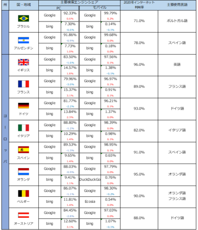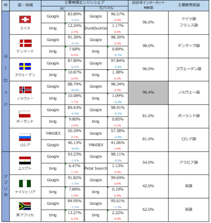 世界40カ国、主要検索エンジンシェア【PC、モバイル】