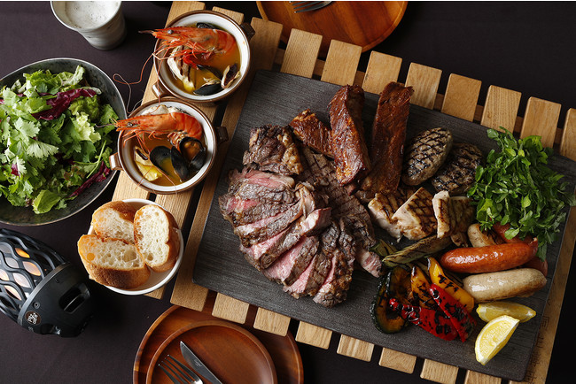 お食事は、目の前の鉄板で焼き上げるお肉料理をはじめ、この時期が旬で最も脂が乗り、香りと旨みが存分に味わえる鮎の塩焼きなど、季節感あふれるお料理のほか、飲茶やお寿司など、ホテルならではのバラエティに富んだ味覚もとり揃え、アウトドア気分を味わいながらも、ホテルシェフが作る贅沢なメニューをお愉しみいただけます。また、プロジェクションマッピングによる夜景演出もあり、まるで本物の森の中にいるか のような幻想的な雰囲気もお愉しみいただけます。