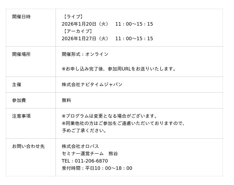 [表: https://prtimes.jp/data/corp/75553/table/92_1_2c77b0a879c192c49099db6061a8f07c.jpg?v=202601131015 ]