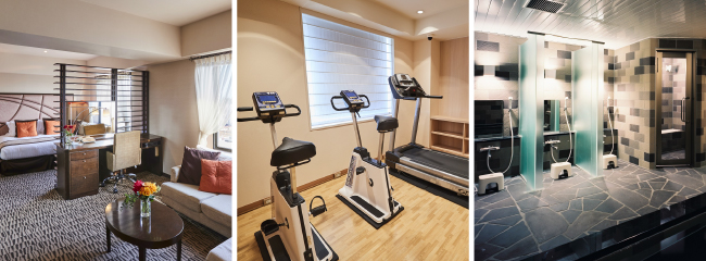 シック&モダンな客室はベッドも浴槽も大きめのゆったりサイズ。宿泊者専用サウナ・大浴場もございます。