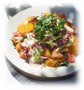 冬の寒さから目覚めて活動を始める春。苦味や香りの強い野菜やハーブなどを使った料理で心身ともにリラックスし、デトックスできるレシピを紹介。たことシトラスのセビーチェシトラスの甘くやさしい酸味ビタミンがたっぷり摂れる