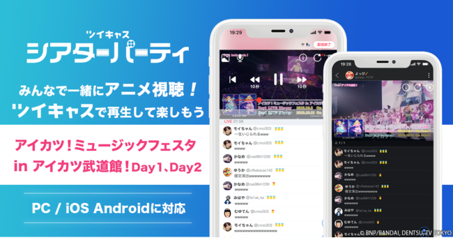 ツイキャスの「シアターパーティ」の公式コンテンツに「アイカツ武道館!」Day1&Day2「アイカツプラネット!」が登場。配信中にシアターパーティで選択すると、期間中いつでも視聴者と一緒にアニメ映像をお楽しみいただけます。