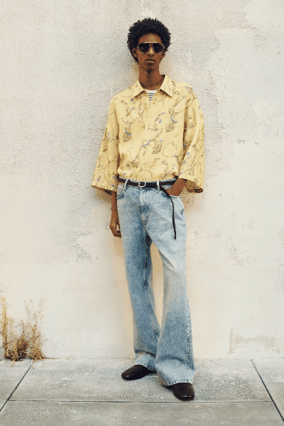 パンツのシルエットは、幾重ものプリーツを施したワイドクロップドから、ロング&フィットのベルボトムまで多彩に展開。キャンプカラーシャツは、さまざまなパターンや織りのバリエーションを探求し、レイヤードによって存在感を高めるデザインに仕上げられています。また、グラフィックなモノクロのハーレクインニット、ボートネックTシャツ、スポーツテイストのベスト、グラデーションチェックのシャツ、異なる幅のストライプパンツ、贅沢な装飾が施されたスエードブルゾン、そして繊細な色調のスーベニアジャケットが、絶えず新しいものを求める、多様な現代の男性のためのアイコニックピースとして揃います。