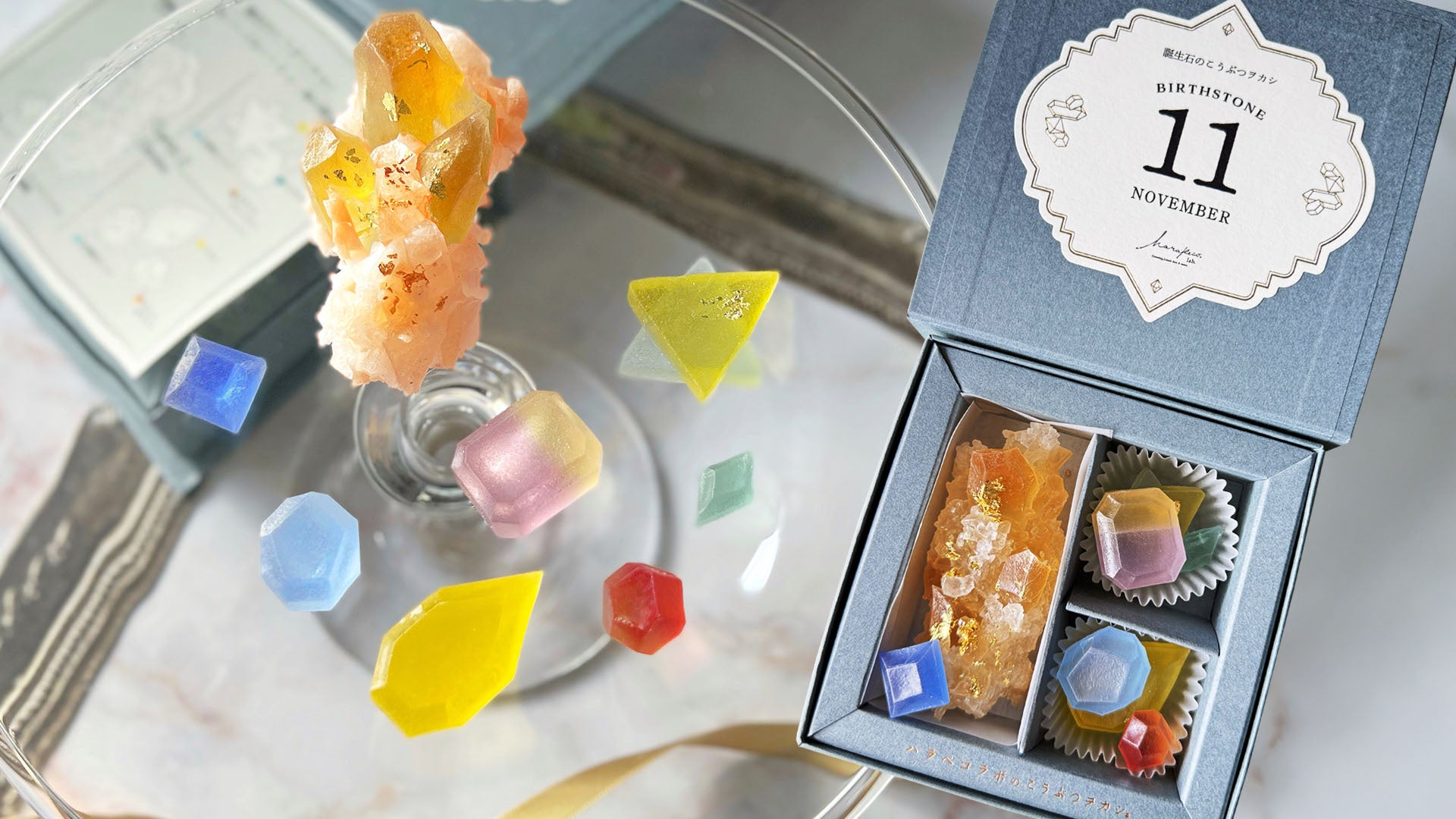 メルティングポットハラペコラボ株式会社(所在地:福岡県福岡市、以下 ハラペコラボ)より、11月の誕生石トパーズとシトリンを職人がリアルに切り出す期間限定の琥珀糖ボックスが登場。公式オンラインショップにて2025年10月24日より販売を開始しました。”誕生石を食べる”という新しい体験を11月生まれの大切な人へ、自分へのご褒美にも。美しく輝く宝石のようなアートなお菓子をお楽しみいただけます。