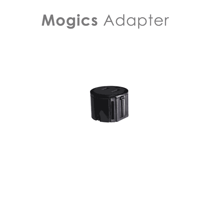 MOGICSアダプター(米国版)がUS ACプラグを英国、EU、AUプラグに変換します。