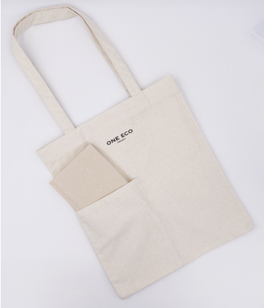 商品仕様:文庫本サイズのポケットがついた100%コットンのトートバッグ