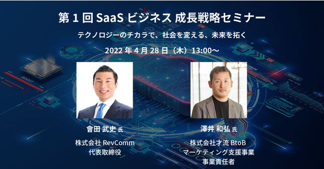 株式会社RevComm(レブコム、本社:東京都渋谷区)代表取締役 會田武史が、2022年4月28日に開催される、株式会社日本ビジネスプレス主催「第1回 SaaSビジネス 成長戦略セミナー」にスペシャルゲストとして登壇します。