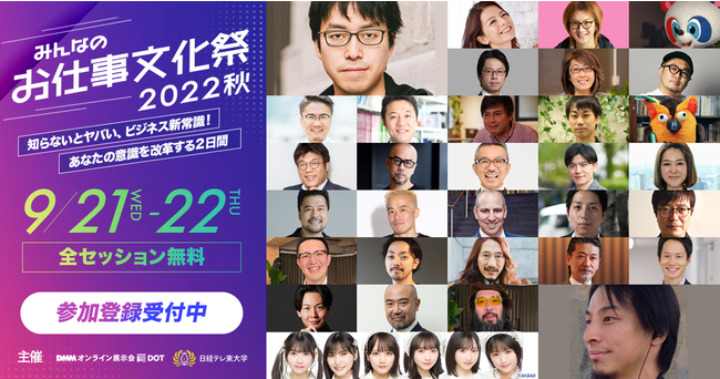 成田悠輔氏、ひろゆき氏らが登壇!『みんなのお仕事文化祭 2022秋』全セッションタイムテーブルとタイトルを公開!