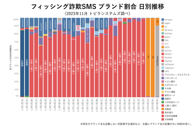 特殊詐欺やフィッシング詐欺の対策サービスを提供するトビラシステムズ株式会社(本社:愛知県名古屋市、以下「トビラシステムズ」)は、2023年11月に当社調査で確認された詐欺電話や詐欺SMSに関する独自調査レポートを公開します。(調査期間:2023年11月1日〜11月30日)