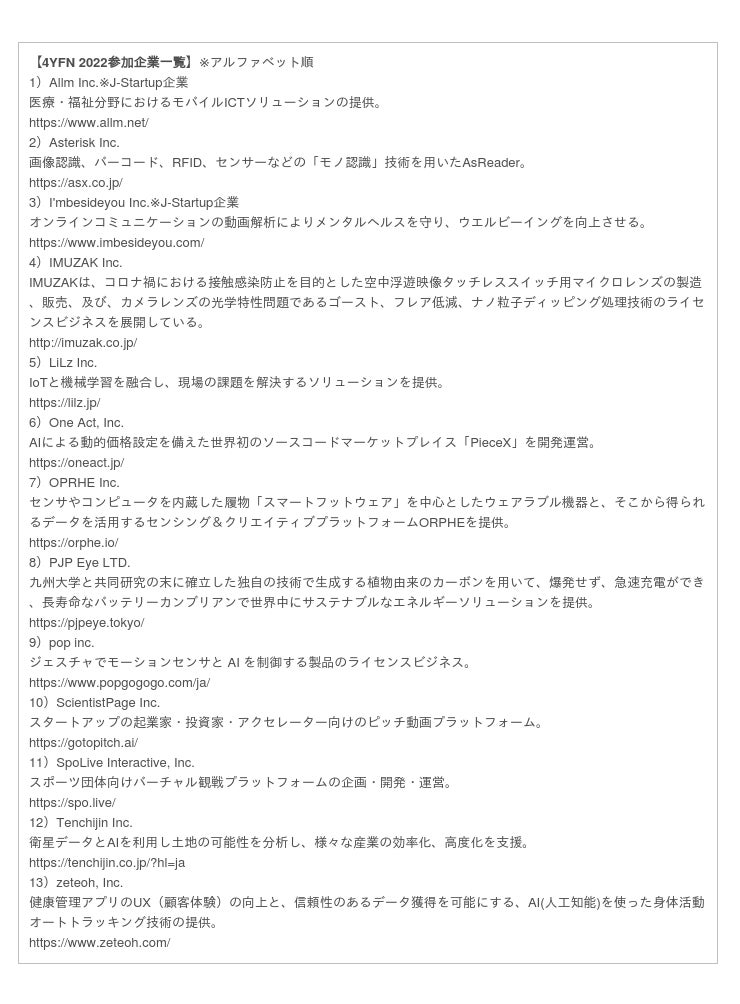 参加スタートアップのリストは下記よりご確認ください。
