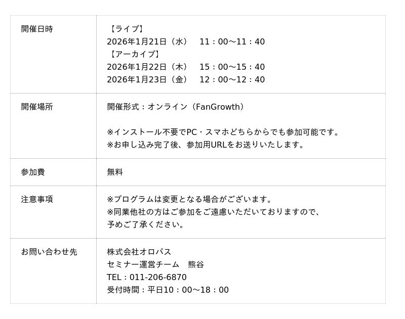 SEOツール「パスカル」の開発・提供を行う株式会社オロパスは、2026年1月21日(水)に、士業の方向けにAIを活用してSEOを自走できるようになるためのウェビナーを開催いたします。