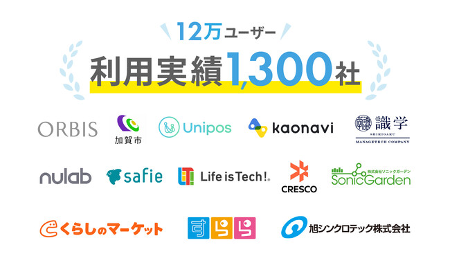 これまでに、8,000人以上の従業員を抱えるプライム市場上場企業、グロース市場にIPOを果たしたテクノロジー企業、ベンチャーキャピタルから数十億円の資金調達をしている未上場企業、創業から間もない数名〜10数名の規模の企業まで、累計1,300社導入および利用者12万ユーザー突破の実績があります。