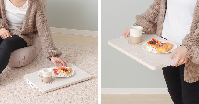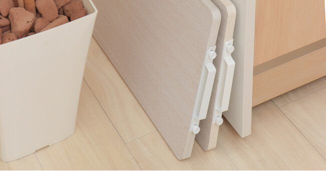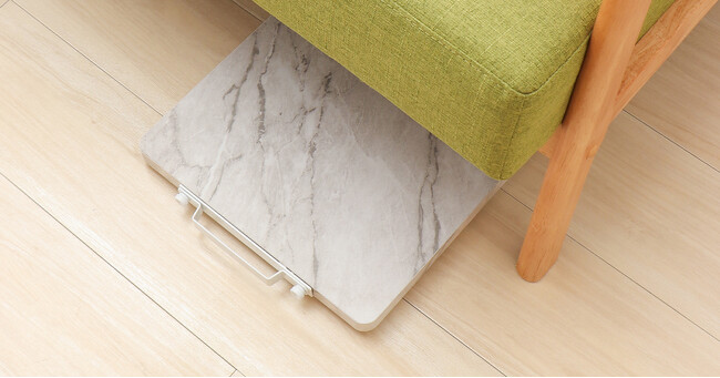 厚さは約3cmとスマート。隙間に立てかけたり、ソファやベッドの下に入るため、収納場所に困りません。