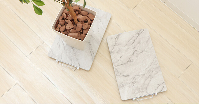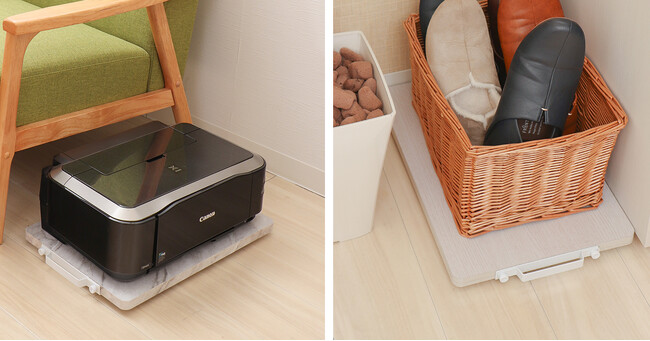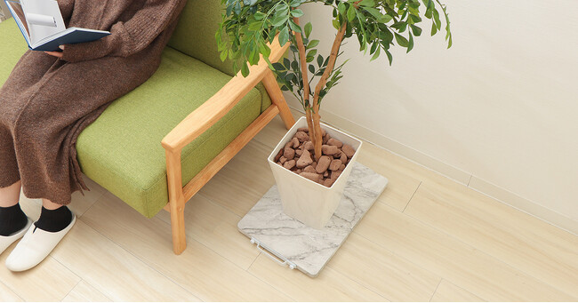 耐荷重は70kg。植木や空気清浄機などずしっと重たいモノもOK。床のお掃除が億劫になりがちな重たいモノもホームキャリーにのせれば楽に移動が出来、お掃除も楽ちん。