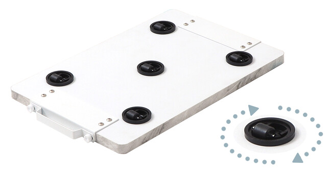 埋め込み式のキャスターを採用しているので、キャスターのごつごつした存在感ゼロ!あの台車のイメージが消え、一気にスタイリッシュな雰囲気に。また、キャスターは360度回転するので、重たいものも、狭いところもすいすい移動できます。