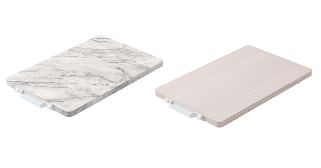 高級感のある大理石と温かみを感じる木目の2種類。どちらもインテリアに溶け込むシートデザインです。