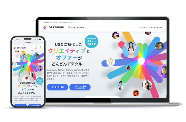 「DETEKURU」は動画制作、写真撮影、デザイン、イラスト・漫画、テキストライティング、音声・作曲など、SNSに特化した各ジャンルごとのUGCクリエイターとクライアントをスムーズに繋ぐマッチングサービスです。