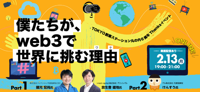 東京・丸の内の創業支援施設「Startup Hub Tokyo 丸の内」では、TOKYO創業ステーション6周年記念イベント『僕たちが、web3で世界に挑む理由〜TOKYO創業ステーション6周年Thanksイベント〜』をオンラインで開催します。