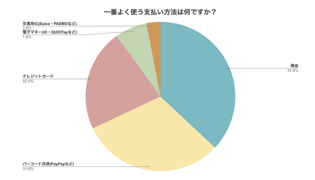 今回の調査では、最も利用されている支払い方法として『現金』(37.0%)がトップであり、キャッシュレス化が進んでいる現在においても、多くの方が現金を利用していることが明らかになりました。